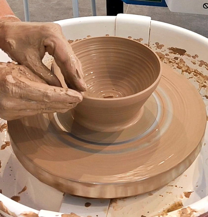 Durante las clases te mostramos desde el principio a cómo manejar el torno alfarero, desde la mejor postura, la colocación de las manos en cada parte del torneado y el uso de las herramientas de retorneado.